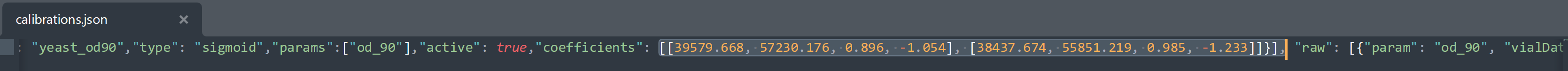 9. Copy and paste the values output from `sigmoid_fit.py` in `evolver-min/evolver/calibrations.json` for the correct vial and correct min-eVOLVER