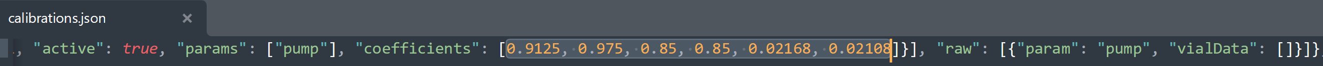1. Replace the values *and comma* after "coefficients" (shown below)