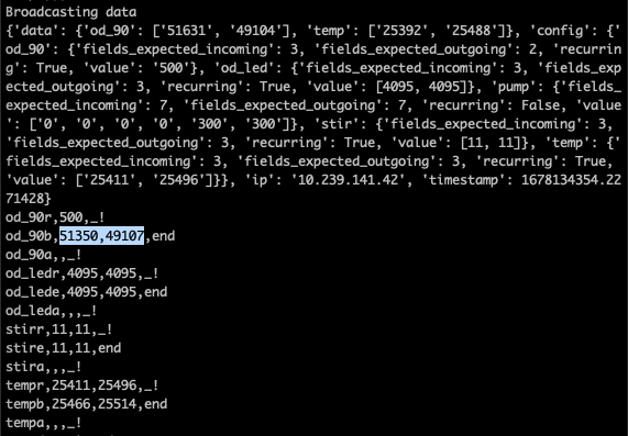 <figure><img src="https://3394537773-files.gitbook.io/~/files/v0/b/gitbook-x-prod.appspot.com/o/spaces%2FYy5AdmKzUTn7D8n357Md%2Fuploads%2FmYQNdHGjMPHyxpykfh7q%2Fimage.png?alt=media&#x26;token=17fac8ad-b96d-485d-8985-2c2ef1a2830a" alt=""><figcaption><p>Highlighted are the OD sensor values for the first and second vials respectively on a min-eVOLVER.</p></figcaption></figure>